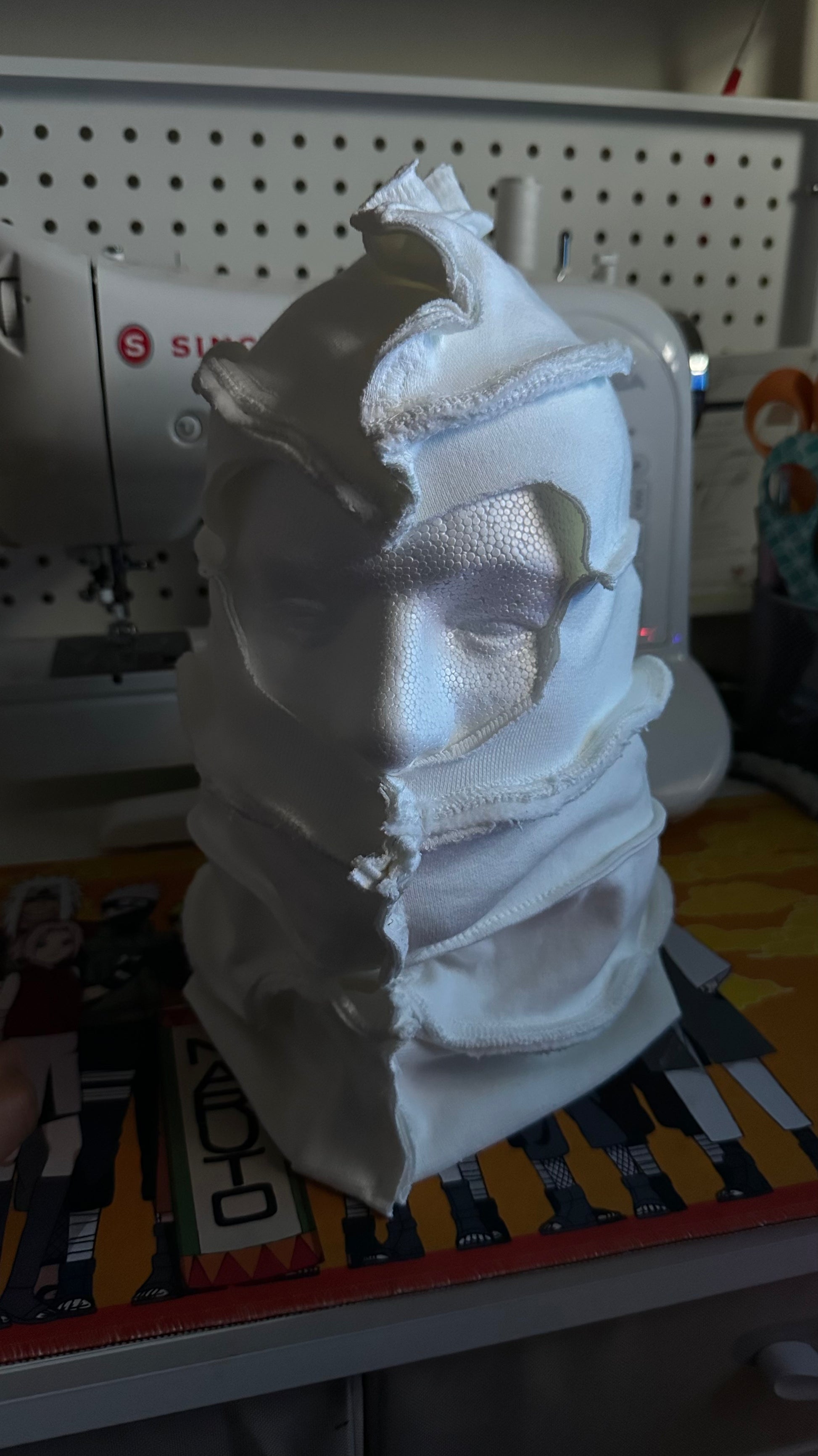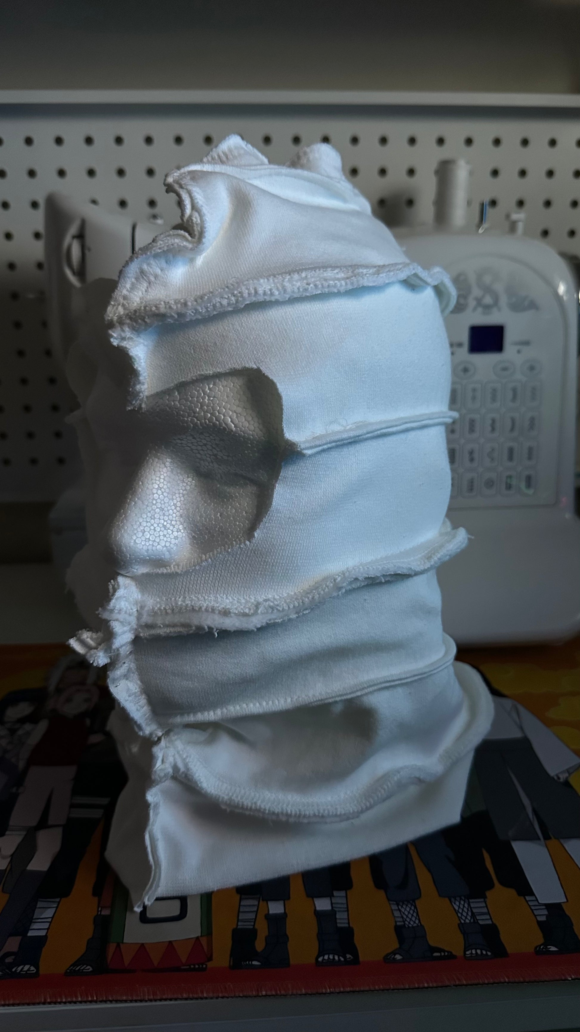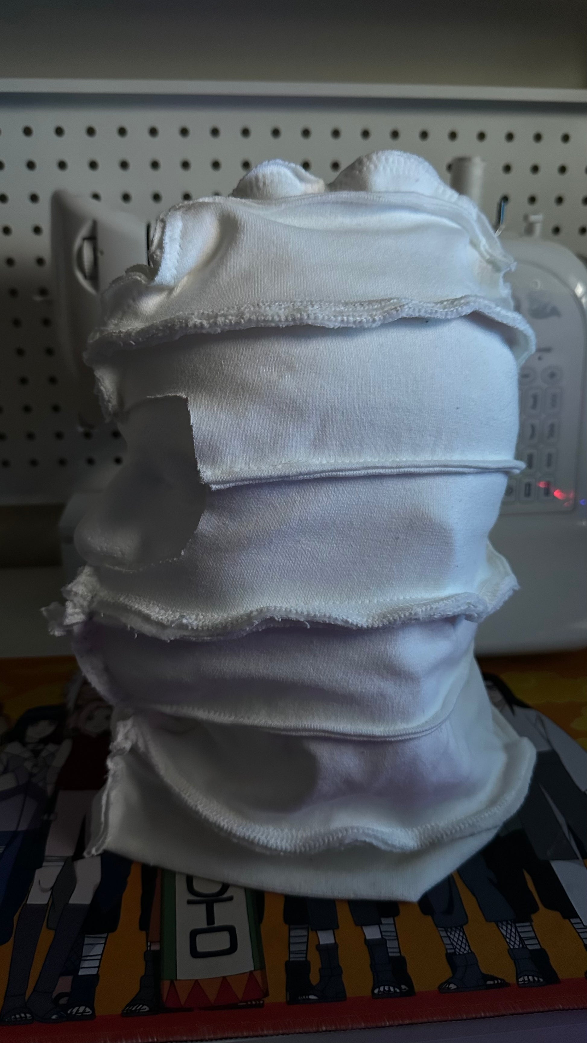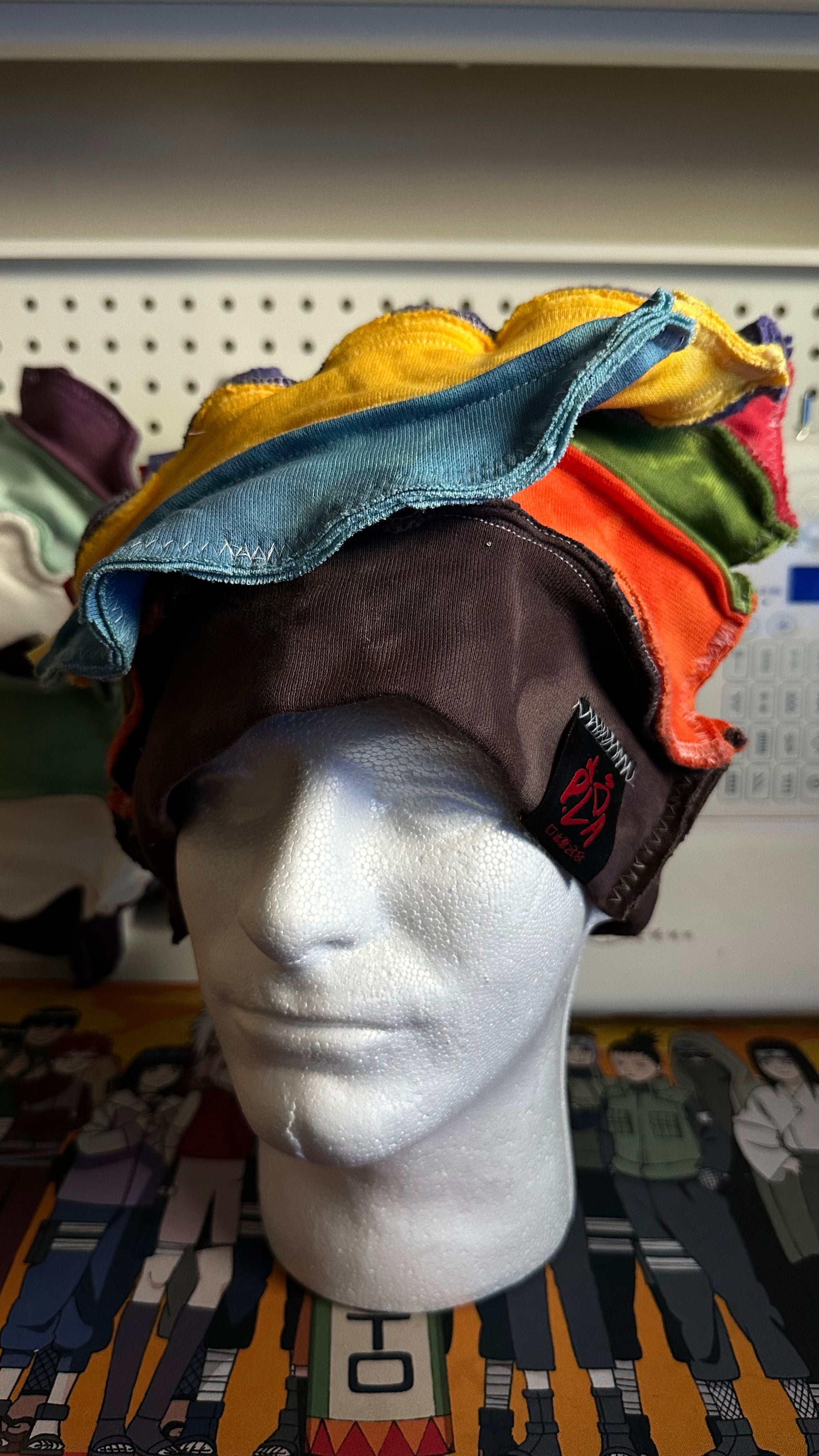 Each Beanies/Mask has pieces of each hoodie dyed from our workshop to create a head accessory. Each one with its own unique colorways featuring a simple clean white Ski Beanie.